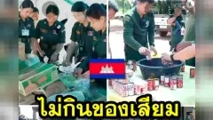 โซเชียลฮือ! “ตำรวจเขมร” แอบกินของไทย ทั้งมาม่า-ปลากระป๋อง หลังเคยประกาศกร้าว “ไม่กินของเสียม”